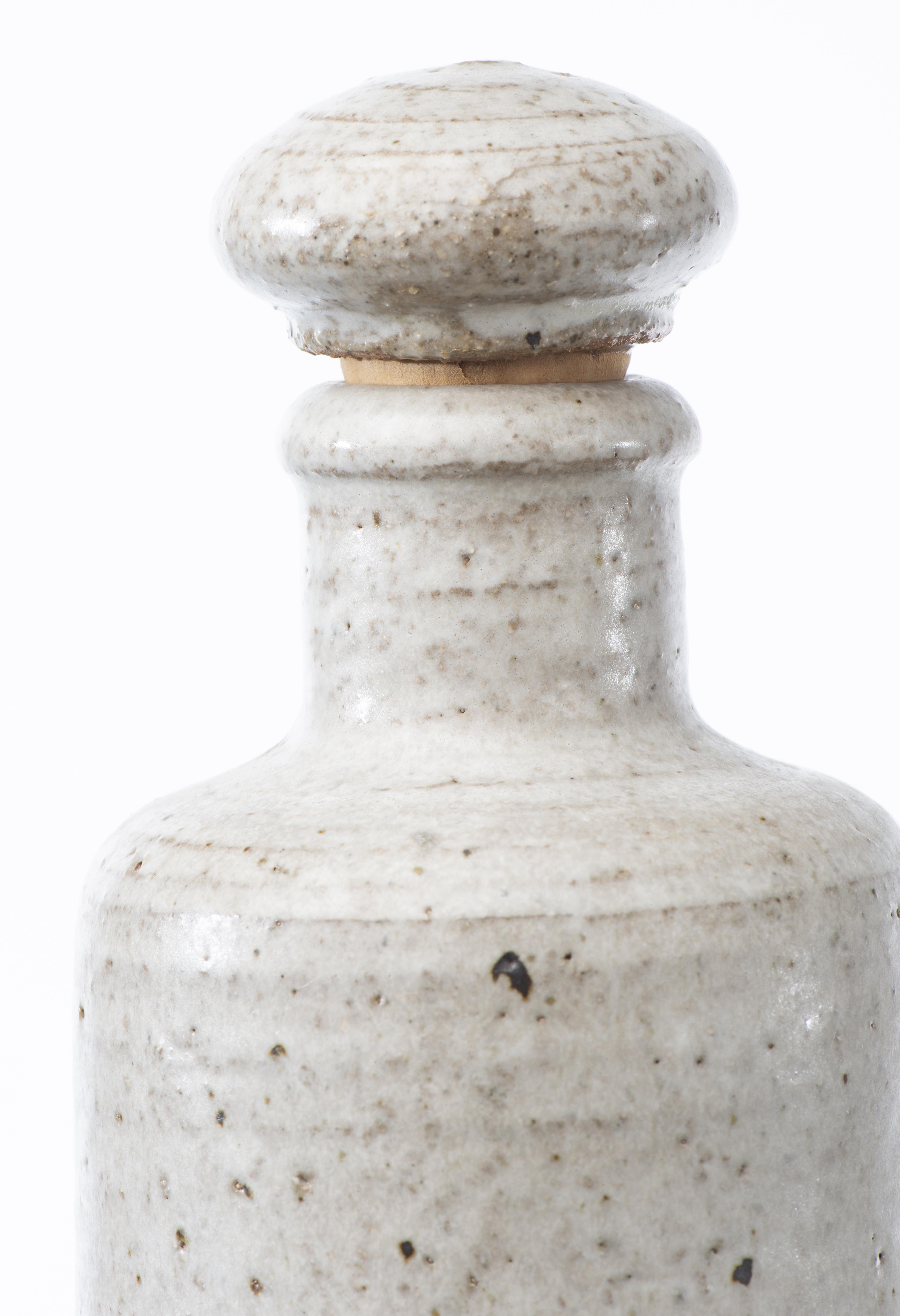 Édouard CHAPALLAZ (1921-2016), Service en céramique à couverte blanche composé de six assiettes et d'une bouteille, signé sous la base du cachet habituel.