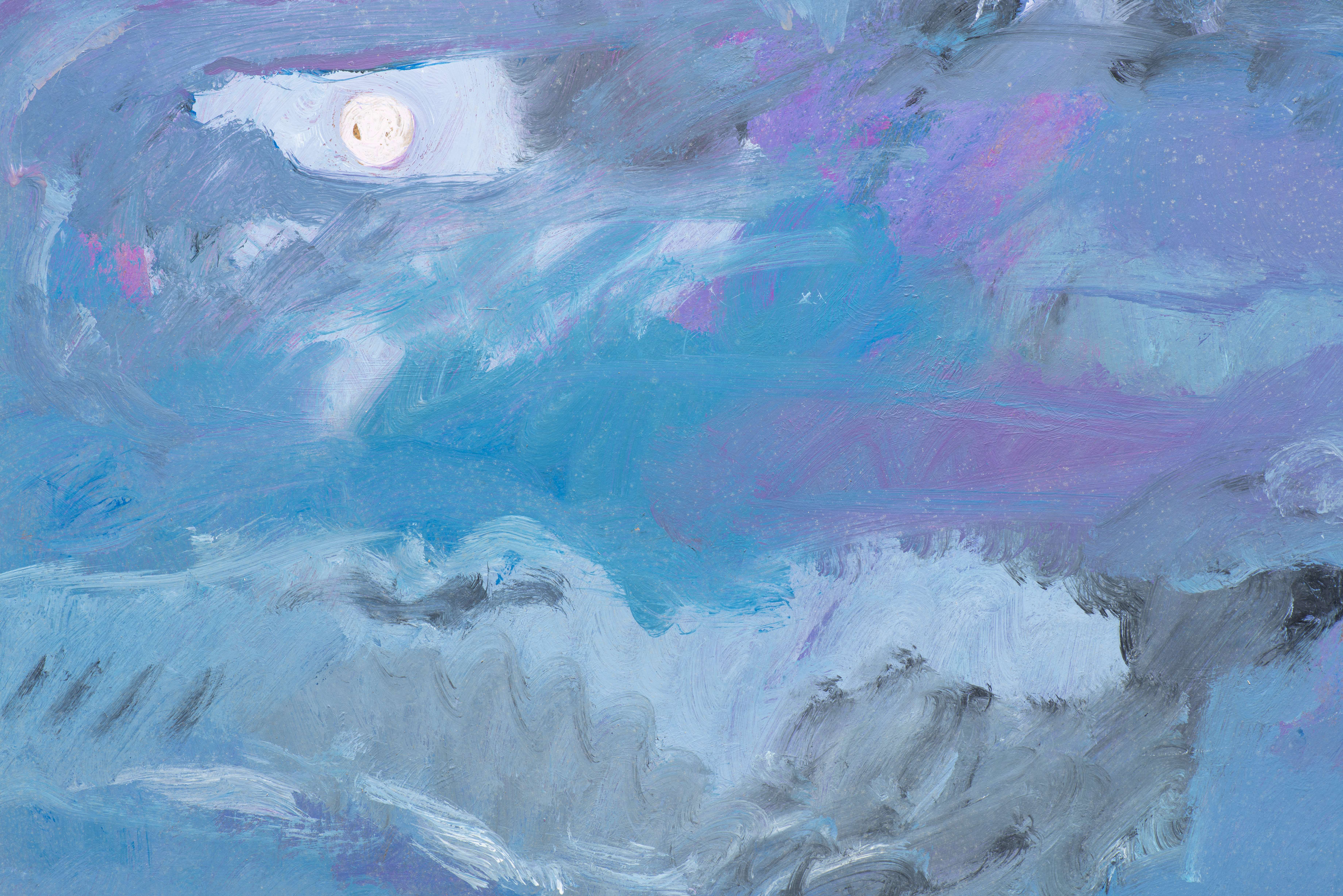 Jean KRILLÉ (1923-1991), 'Paysage de nuit à ciel couvert', acrylique