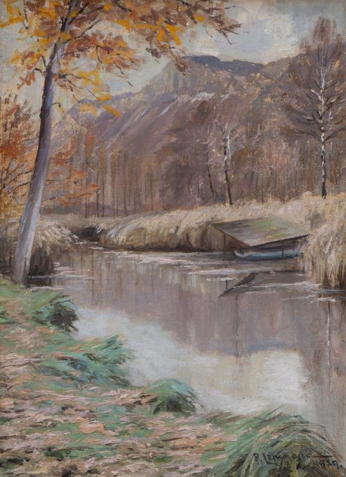 Émile BOURCART (1827-1900) "Les amours de Daphné", huile sur toile, daté 1876