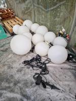 Lampadaire d'extérieur à pied en inox et 3 boules de verre blanc